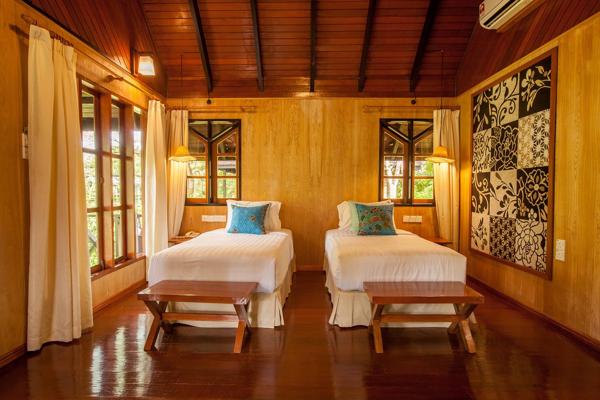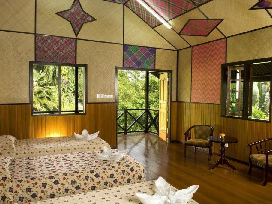 There are 60 twin-sharing chalets available at Sepilok Nature Lodge, all tastefully designed with local wood and adorned with handcrafted textiles.