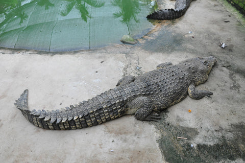 Crocodiles are farmed for their skins as crocodile leather can be made into goods such as wallets, briefcases, purses, handbags, belts, hats, and shoes.